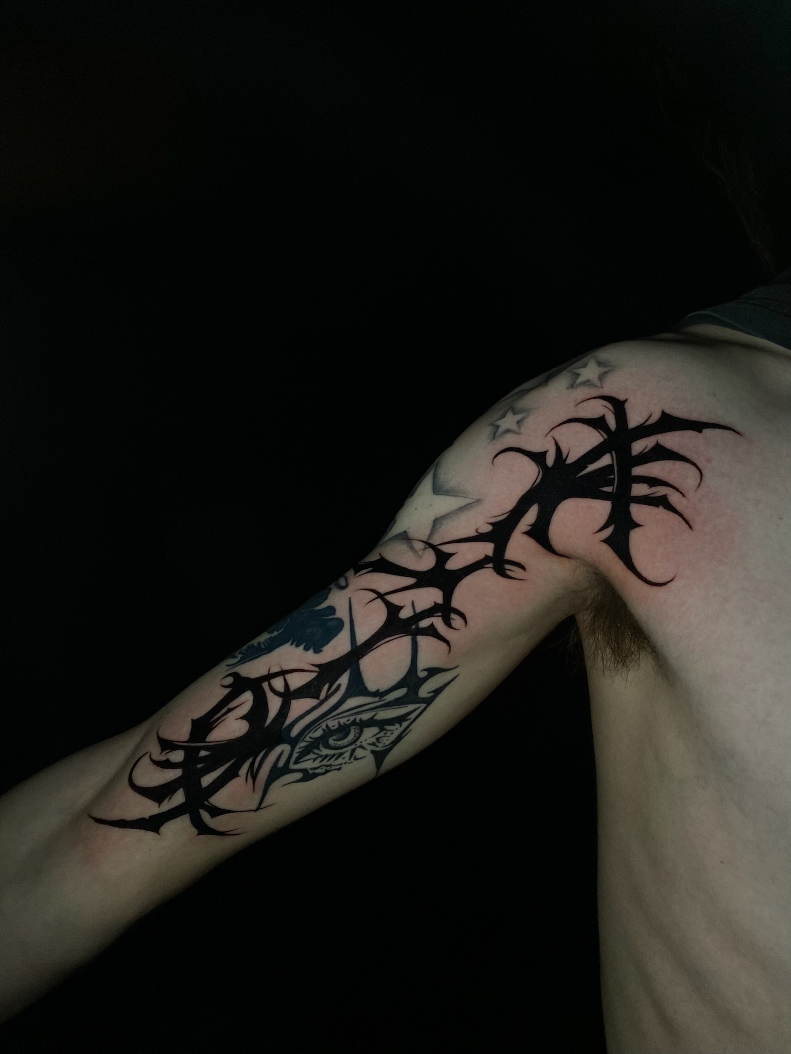 With a strong passion for art and self-expression, Jess began learning the craft of tattooing in 2024 right here at Lark Tattoo. Her love for gothic imagery is reflected in her bold blackwork and dark, custom designs. While her drawing style leans graphic and gothic, she is deeply interested in all tattoo styles and is constantly working to perfect her technical skills across as many as possible. She is committed to creating a safe, welcoming experience while helping each client bring their vision to life.